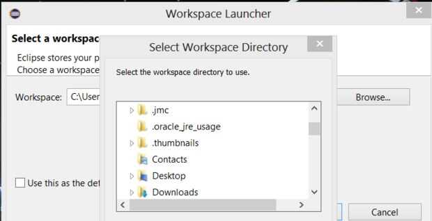 Ahora necesita iniciar Eclipse. Debe abrir una ventana con un botón llamado "Buscar". Haga clic en examinar. Ahora deberás buscar la carpeta que hiciste y haga clic en Aceptar.