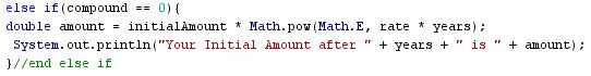 cantidad doble = initialAmount * Math.pow (Math.E, tasa * años);