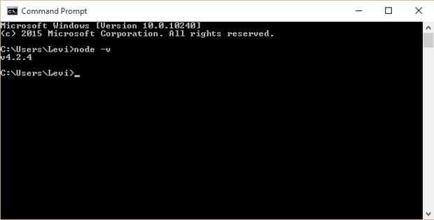 Debe ver que algo a imprimir en la consola como "v0.12.0". Puede haber un número de diferente si instaló una versión diferente del nodo. Si ves un número de versión y no hay ningún error, han instalado con éxito NodeJS.