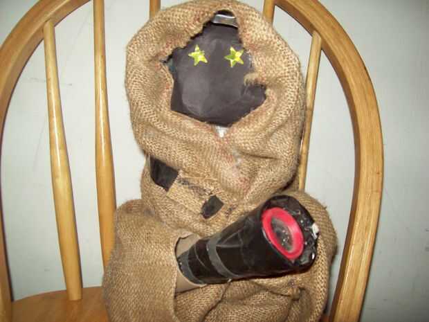 The Robe/Hood:Yardas de lana marrón más horas me reacquainting con el cantante resultaron en esta túnica suelta de Jawa y capucha separada. El material de la campana se recogió alrededor en clase de forma cilíndrica y cosido, por lo que puede ser de