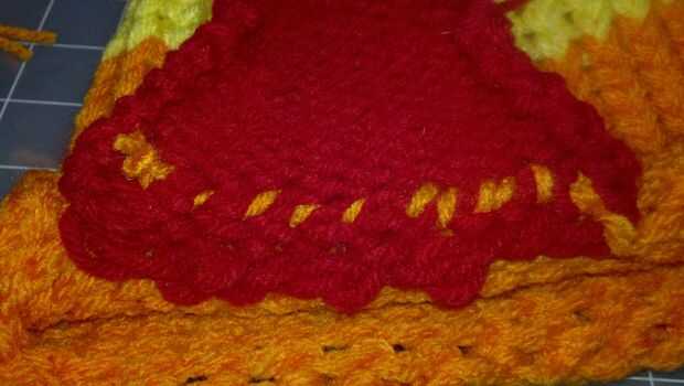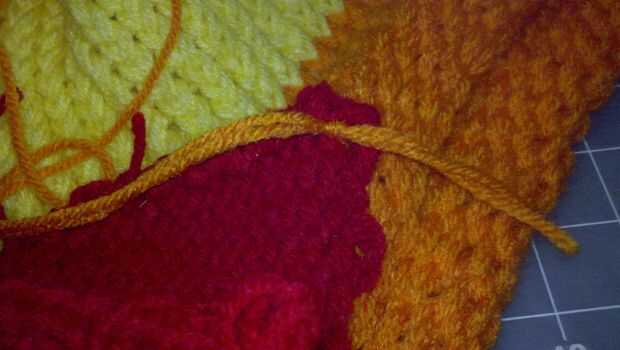 Usando el hilo naranja, látigo coser la oreja en su lugar.