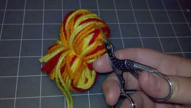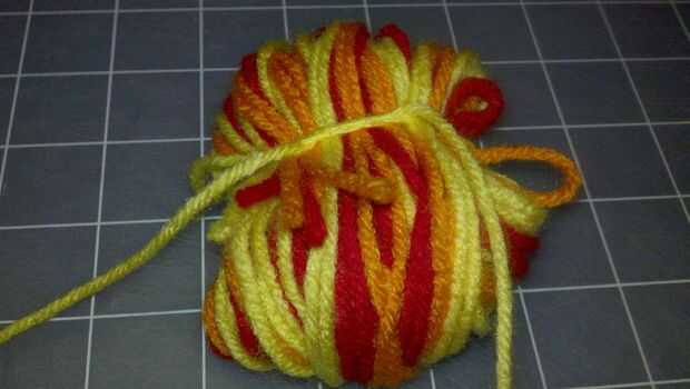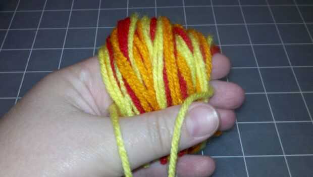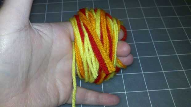 Envuelva el hilo alrededor del índice, medio, y los dedos anulares veinte veces, cortar el hilo de las pelotas.