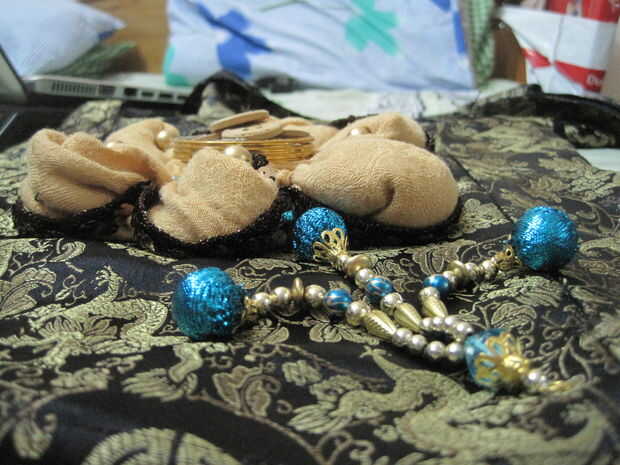Coloque el accesorio colgando del grano como se muestra (que se asemeja al tallo y las hojas). Sus ramas en el bolso para mantener firme la puntada. Asegúrese de que el hilo es oscuro y obtiene camuflado con el bolso. VOLAA!!! Allí tienes :) :) tu Jazy Saflower!!!!!!