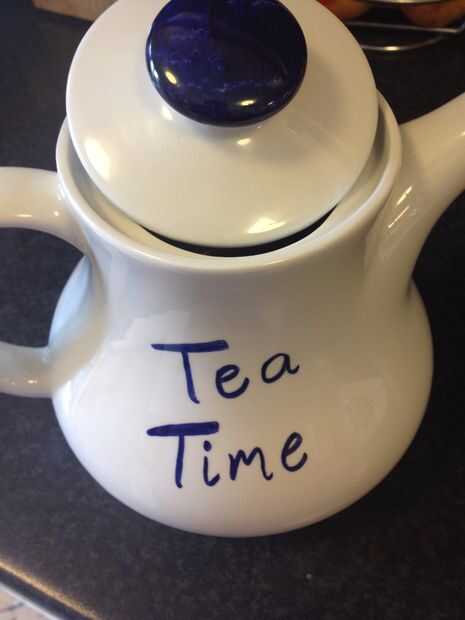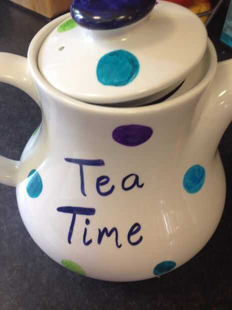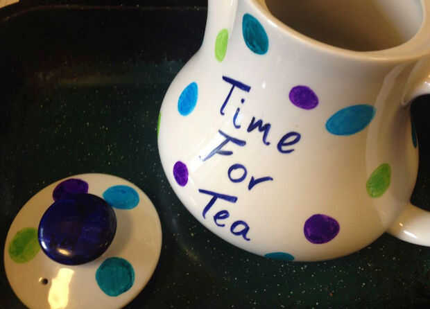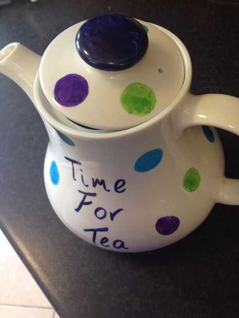 Después de que el diseño fue acabado al horno la tetera en el horno durante 25 minutos a 160 grados para que el diseño sea permanente.