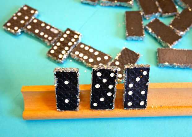 Me encanta el dominó... Creo que una de las cosas que más me gusta de ellos es lo que sientan en mis manos. Me gusta el peso y el ruido que hacen cuando haga clic en conjunto. La mayoría está hecha de "hueso", marfil, plástico pesado o madera. Recientemente me doy un conjunto de fichas de dominó que estaban hechas de una madera muy ligera y bastante no cortaron para mí, así que, decidí añadir un poco de brillo para condimentar para arriba.