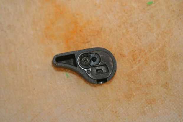Aquí fue la parte que quería copiar. Es el selector de un rifle. Estoy seguro de que usted puede comprar estas piezas pero no tenía ganas de pagar $10 + $10 de envío en ebay por algo tonto. Por suerte tenía una pieza de recambio de la pistola de un amigo que podría utilizar para hacer la copia. Observe que hay algunas áreas muy finamente mecanizados de esta parte que eran esenciales para el montaje de la pistola.