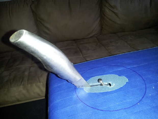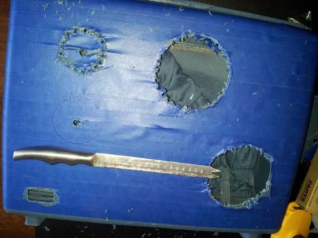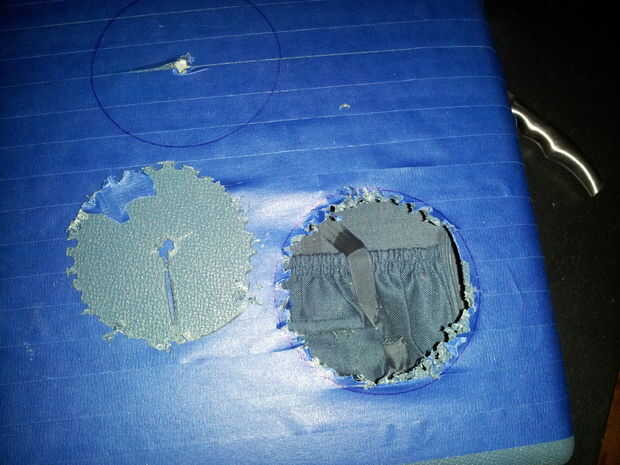 -Perforar la partida y en la caja, un router sería lo ideal pero sólo tenía un cuchillo de cocina de acero inoxidable