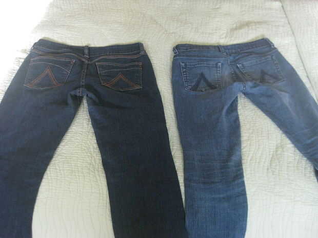 Los pantalones vaqueros que utiliza para los arcos tenían una rasgadura en el trasero. Son la pareja más ligera.