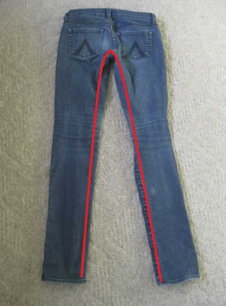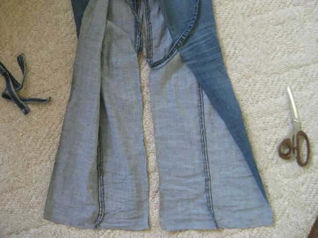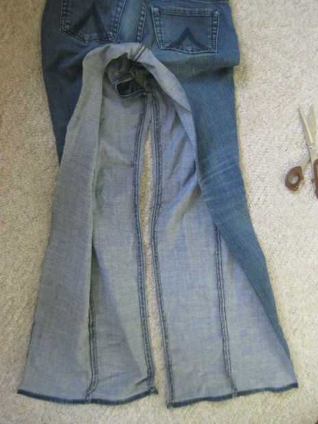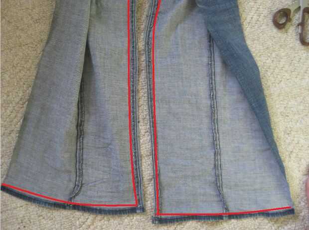Corte los pantalones vaqueros en el interior costuras a lo largo de la línea roja en la primera foto.