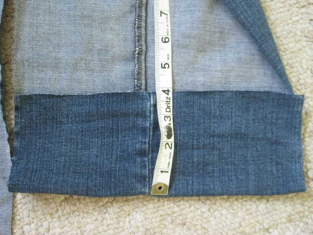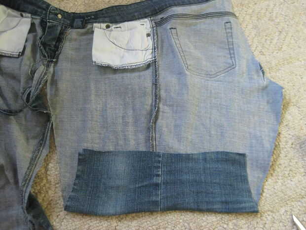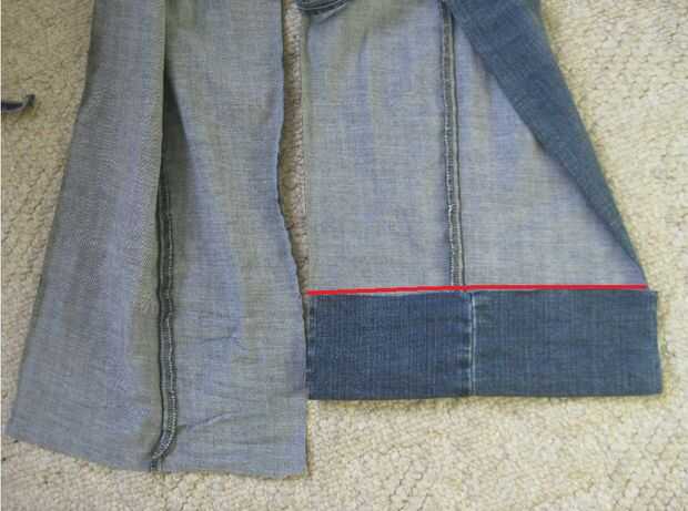 Seguir el corte hasta llegar a la parte del extremo principal de los pantalones vaqueros.