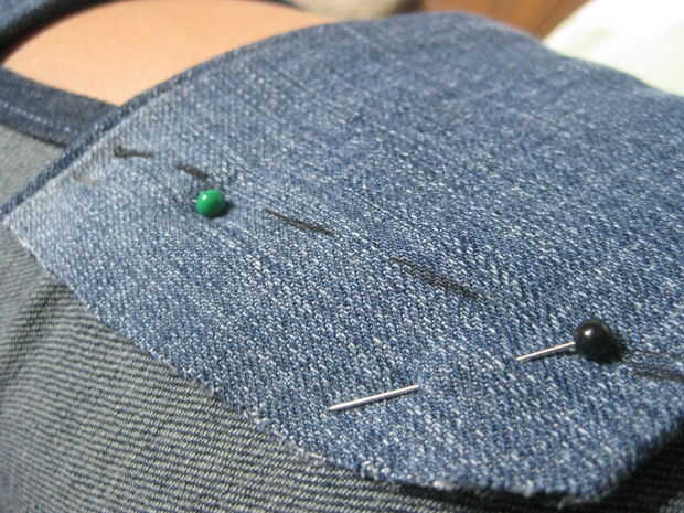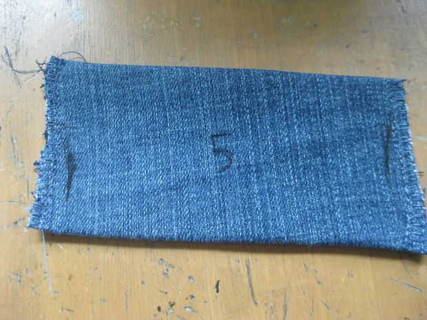 Donde se cose las tiras a los pantalones vaqueros de la marca. Numerarlos para que pueda sustituirlos y marque su ubicación en los pantalones vaqueros.