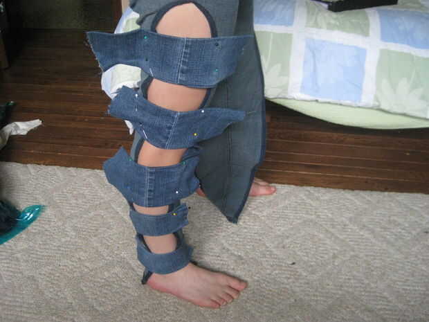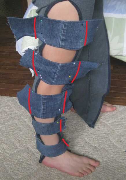 Prender las tiras en una pierna, espaciados uniformemente. (ver fotos 1-6).