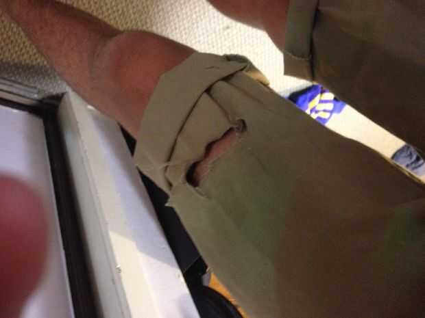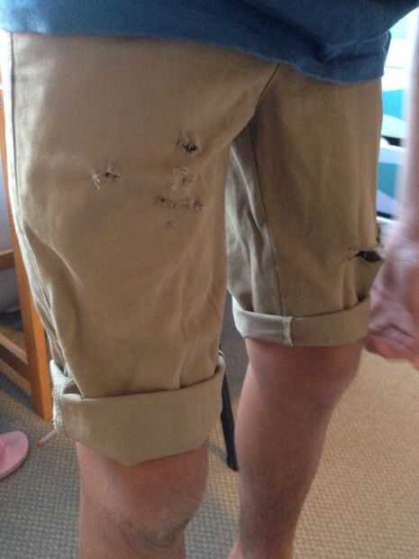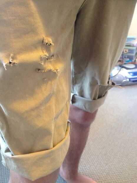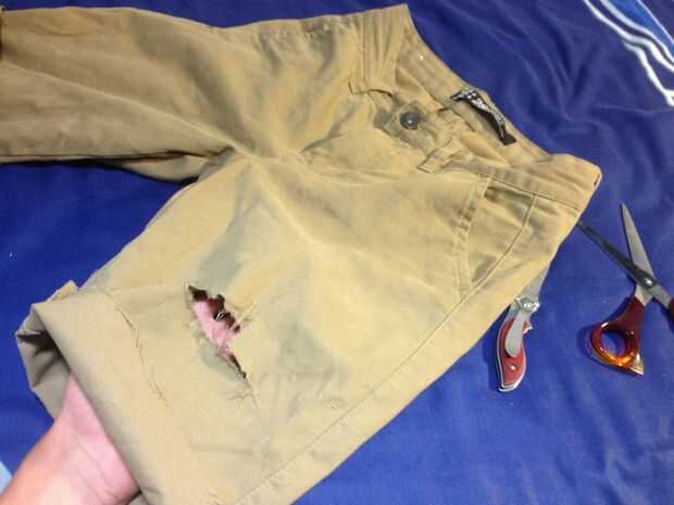 Rip/cortar partes pequeñas de sus cortos en los lugares que crees que sería buena, elegí un medio rip en un lado y seis pequeños rips en el otro (: