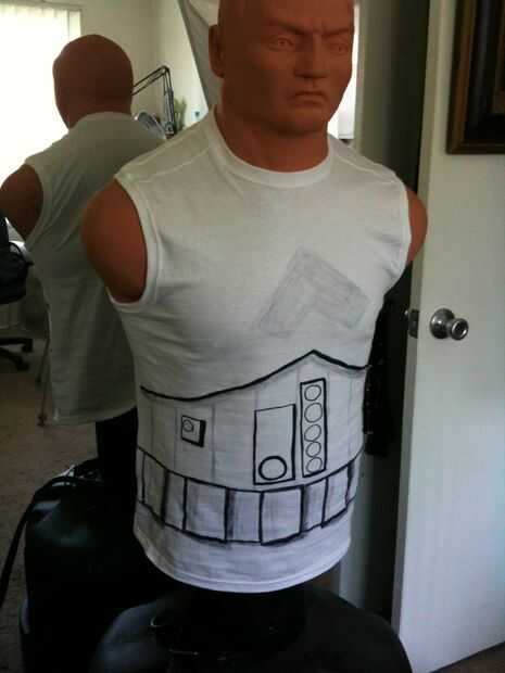 Otra opción, si no tienes un casco para él - puede hacer una cara de la tela, al igual que la camisa. Ponga algunos bateo alrededor de su cabeza y coser en él, o de seguridad pin que muy bien, en la parte posterior. Entonces sacar la cara en blanco más de la tela y coser sobre la cabeza de Bob, entonces usted tendrá una cara Bob punchable!