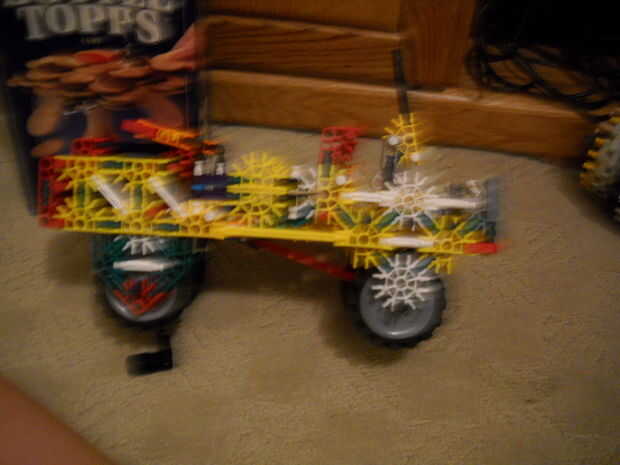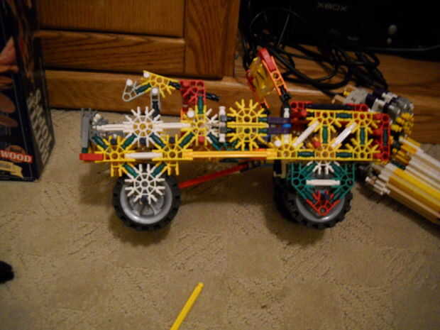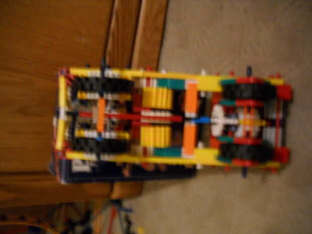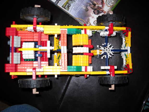 hi this is my old knex high mod jeep. su prety fácil de construir.Paso 1: partespiezas3 conectores y10 barras verdes15 barras blanco9 barras azul3 barras amarillas1 barra roja2 conectores gris6 conecters naranja17 conecters rojo10 conecters amarillo2