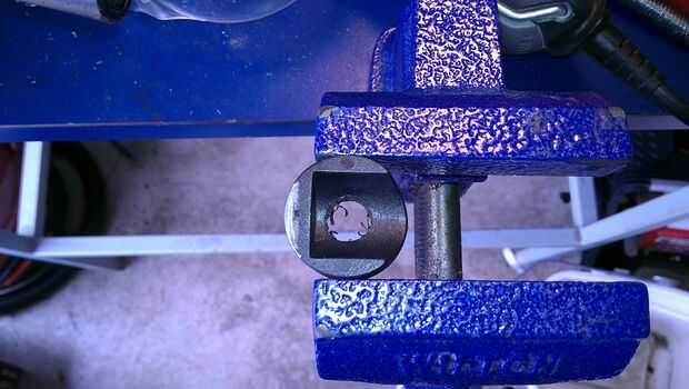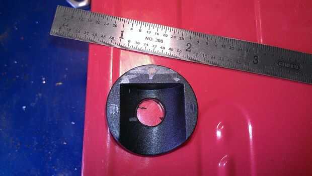Necesitaba para hacer el piso, y por suerte el radio de la montura plástica es más grande que la distancia del cuerpo del Jeep hasta el centro de la toma de la bisagra. Me llevó a cabo el montaje de plástico sobre el encaje de la bisagra y había marcado en el borde del encaje apareció a través del orificio del perno. Esto me dijo cuánto material necesito quitar. Para mi instalación me encontré que tenía que quitar 3/32 de plástico. Luego usé mi Dremel a la arena a la plástica.