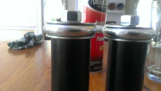 Ahora, romper las herramientas. He utilizado un par de vice apretones, pero una llave de cubo o llave probablemente sería incluso más idóneo. Es muy importante apretar las tuercas en los pernos 2" tan duros como sea posible, para asegurarse de que el peso de la pierna no empuje la clavija del centro del ojo. Usé una barra de metal pequeño que he encontrado en el garaje para empujar 2" perno y apretó la tuerca sobre la misma.