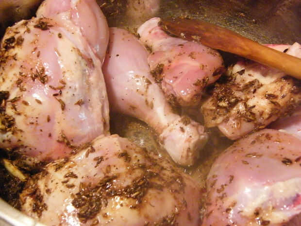 Añadir el resto de las especias, mezclar, luego añadir en pollo