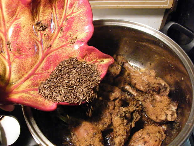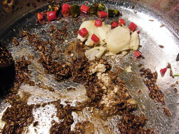 Calentar aceite y freír las restantes semillas de comino, pimienta y cardamomos, revolviendo a menudo