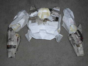 Aprendí de la experiencia que debe añadir papel maché en el interior de las piezas así. Esto sirve dos propósitos, primero fortalece la parte y en segundo lugar bloquea las articulaciones de la cartulina en su lugar totalmente.