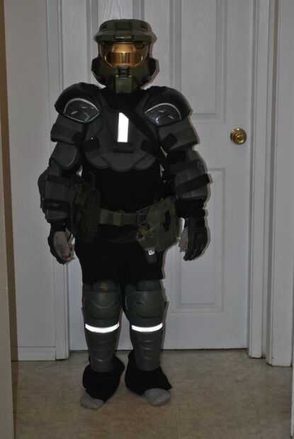 Para completar el equipo nos empareja lo all up with un par de simple placa de chándal y un cuello alto. Pasado ese minuto extra para cruz-puntada el símbolo de Halo en el collar del cuello de tortuga, pero no era necesario.