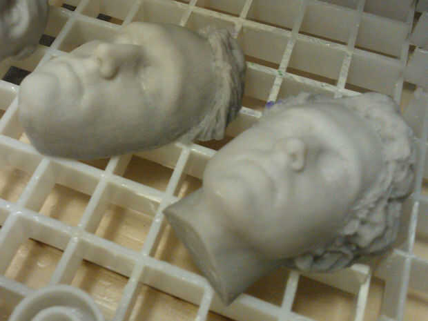 Las cabezas fueron impresos en un otro zprinter sistemas 3D. Las impresiones fueron pintadas con resina epoxi para endurecerlos y rocía con una laca seguro de alimentos.
