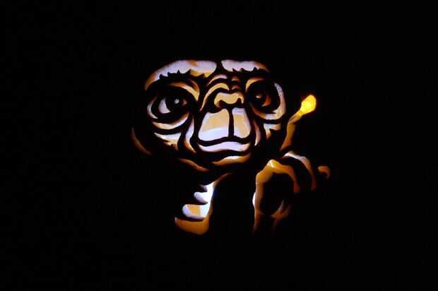 Todas las calabazas fueron iluminadas con velas grandes, excepto E.T. Él fue iluminado con una matriz de seis LEDs blancos, de un amarillo LED Throwie en el dedo. Gracias por mirar! Asegúrese de tomar dulces. :)