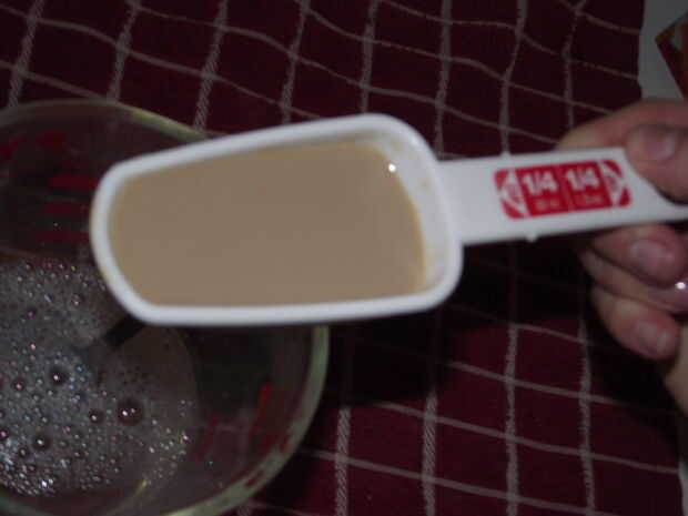 Después de la parte del café se ha solidificado desea obtener 3/4 c de agua caliente de la tubería y añadir otro paquete de gelatina y mezclar hasta que se disuelva completamente. Luego añadir la 1/4 c de alcohol. Asegúrese de escoger un alcohol que iría bien en el café como un Baileys o batida vodka o crema irlandesa. y le dan una agitación rápida y luego tu gotero y añadir derecha encima el café solidificado. Esto le dará dos capas agradables que usted será capaz de ver. Luego vuelva a colocar en el congelador hasta que esté listo.