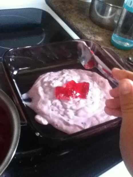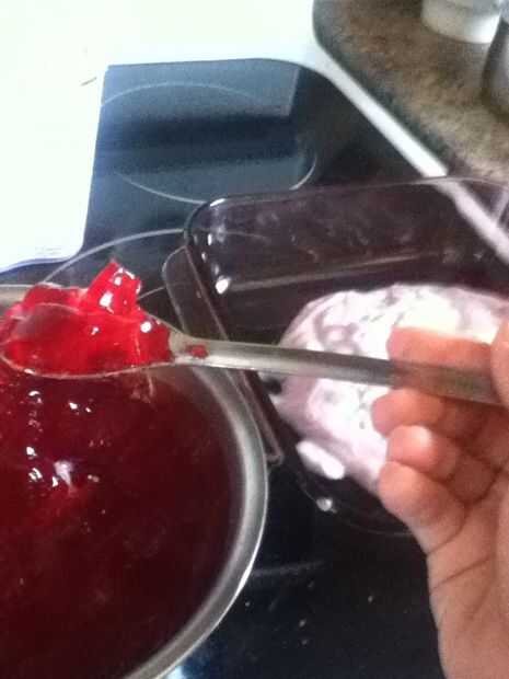 Esta es una divertida receta para hacer cuando la empresa o familia viene encima.Paso 1: Recoger los platos:Tazón medianoCuchara deTaza de medirmolde para hornear de 9 x 14 (no en foto).Paso 2: Recopilar ingredientes:Sabores de gelatina:Fresa, naranj