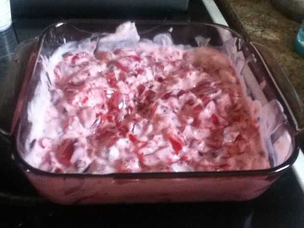 Esta es una divertida receta para hacer cuando la empresa o familia viene encima.Paso 1: Recoger los platos:Tazón medianoCuchara deTaza de medirmolde para hornear de 9 x 14 (no en foto).Paso 2: Recopilar ingredientes:Sabores de gelatina:Fresa, naranj