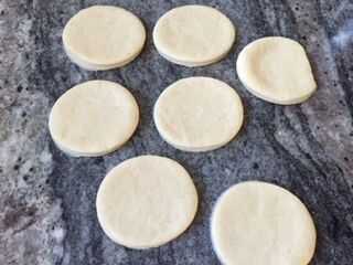 Coloque cuidadosamente cada círculo cortado en una bandeja de horno engrasada.