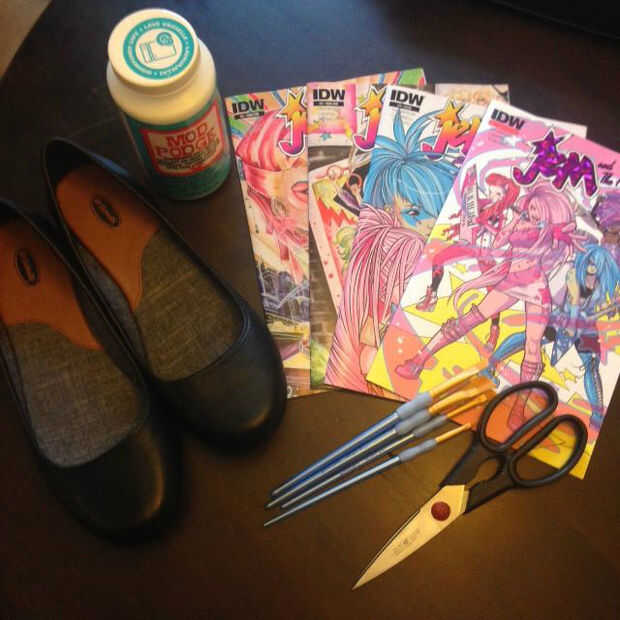 un par de zapatos - creo que 'charol' podría funcionar mejor pero estos eran los que tenía alrededor de que no he usado muy a menudo. Sin duda podría hacer talones pero no sentirla desde los talones a menudo se sienten como aparatos de tortura para mí.