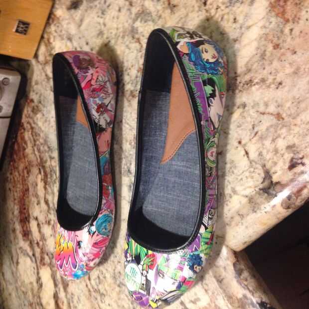 Últimamente he embarcado en varios proyectos de comic/mod podge/vinilo. El primero a completar es el proyecto de zapatos. Este fin de semana mi hija y yo fui de Nana y había completado en un día. Mi hija terminó su Hightops en pocas horas. Pasé más t