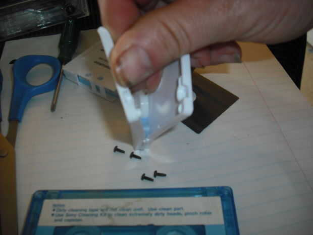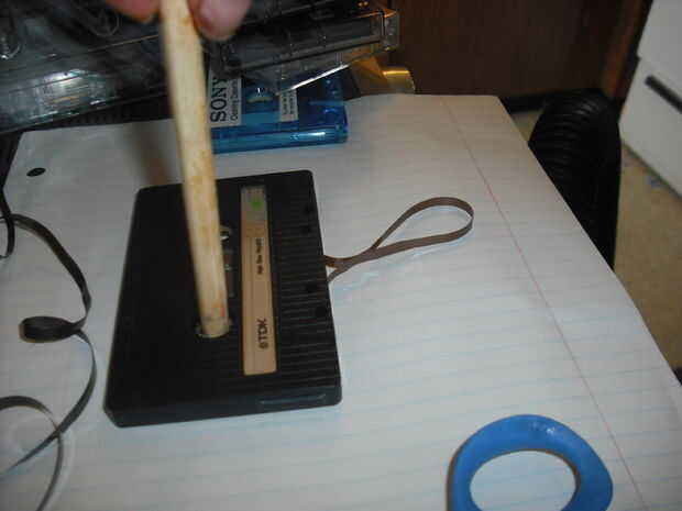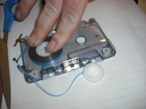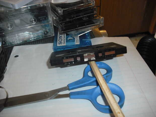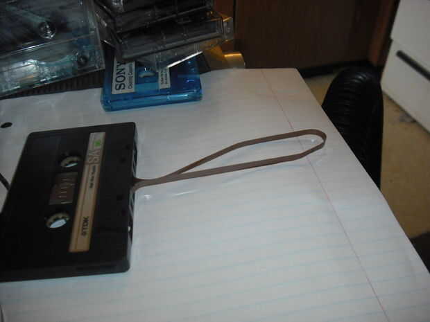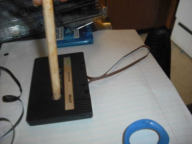 Paso 2... conseguir un ritmo de cinta invisible y poner en un extremo de la cinta... faceing el casete como ves en la foto