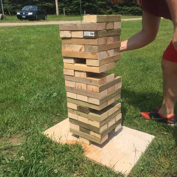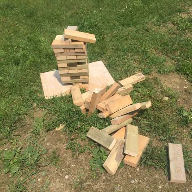 Ahora que ya está todo listo, podrá colocar sus enormes bloques del Jenga.