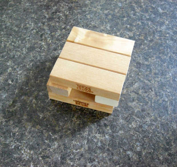 mientras miraba a mi 9 años lucha con una carga de cartón barato apilar manga que viene con nuestro juego de Jenga, pensé, tiene que haber una mejor manera. Sobre todo porque tenía que dejar de cocinar la cena y configurar la pila Jenga cada vez real