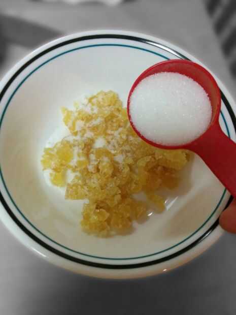 A continuación, en un bol o en un plato mezclar el jengibre más pequeño en 2 cucharadas de azúcar de grano grande. Deben separar y dejar de pegarse uno al otro una vez que están cubiertas en azúcar; Si no les dan ayuda por que los separa.