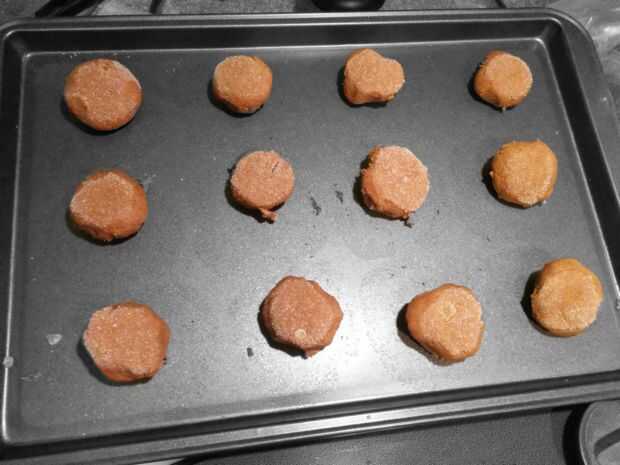 Si usted va la ruta crujiente grande, desea unos 5cm de esferas de diámetro que pulsas antes de sumergir en el azúcar. Si quieres más pequeños, suaves galletas centradas desea sobre una esfera de 3cm de diámetro. No estos de la prensa plana, deja como bolas.