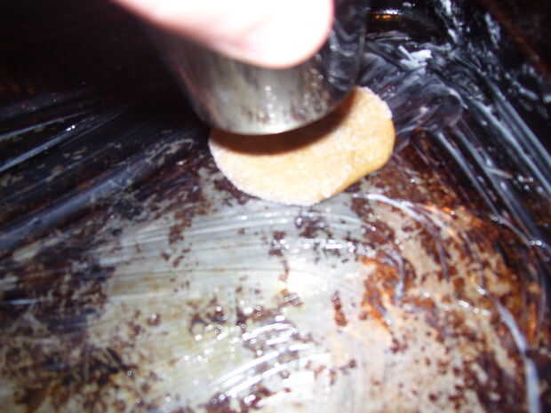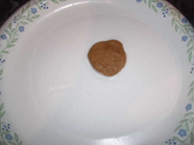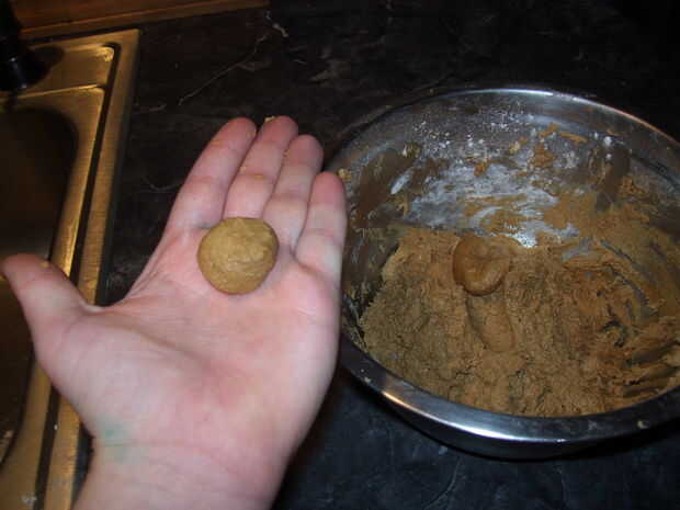 Este paso puede tardar algún tiempo.  Galletas de grasa 2 primer usan algún acortamiento para obtener mejores resultados (Pam hace degustar diferentes).  Mezcla un poco como una cucharadita completa de agarrar y rodar en una bola.  Luego aplanar un poco en su palma y moje un lado el azúcar.  Coloque el lado de sugar snap azucaradas hasta en las galletas y Apisone un poco con algo plano.  Una vez hecho este paso está listo para hornear.