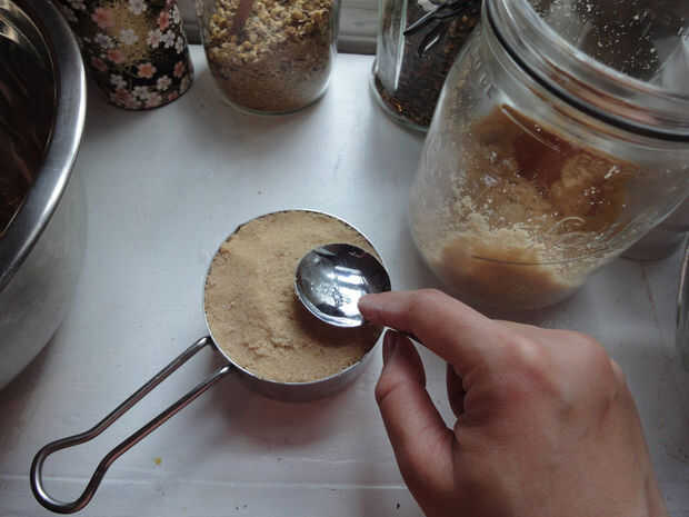 Medición de azúcar morena es mi parte favorita de galletas de la hornada, junto a la toma de muestras el resultado! Azúcar de cuchara en la taza de medición, presionando hacia abajo con la cuchara de medida que se avanza. Cuando la taza esté llena, desmoldar el pastel lindo poco de azúcar en el bol con la mantequilla. Si llena lo suficiente, el azúcar no desmoronarse al hacerlo.