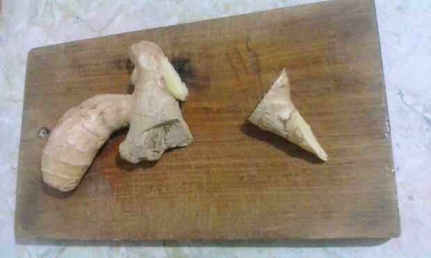 Ahora, tomar jengibre y pulgar tamaño cortar con un cuchillo.