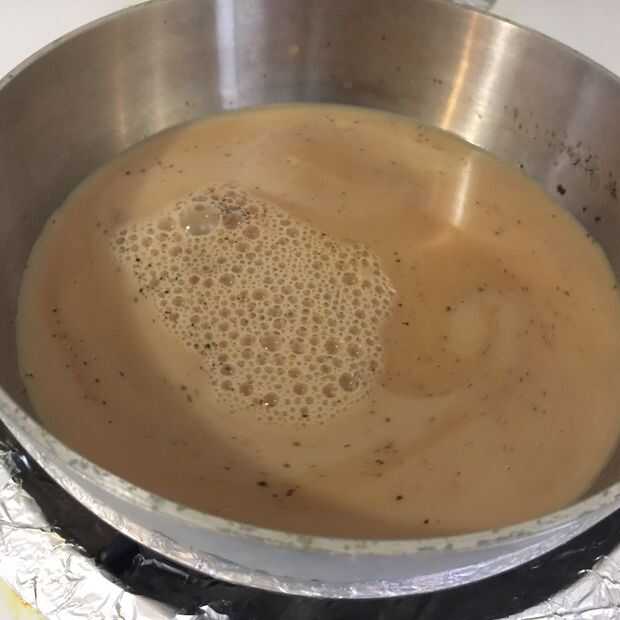 Llevarlo a hervir. Ahora añadir la leche y llevarla a hervir otra vez.