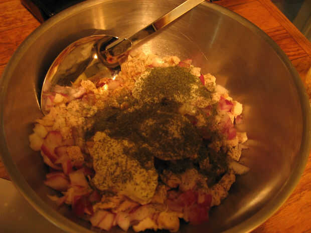 Mezcla bien y luego sazonar con sal y pimienta al gusto. (Realmente usar pimienta 1/2 y 1/2 cilantro en mi molino, utilizar lo que más te guste)