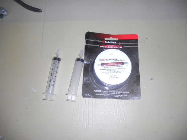 usar esto para soldar pequeños de montaje superficial en DIP freno a tableros.Herramientas:Lápiz de resinaSoldadura de la pasta en un dispensador de estilo jeringa. Pasta de bajo punto de fusión es un plus.Pinzas, el estilo de punta afiladaUn soporte