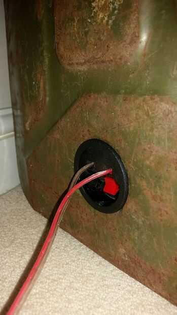 Algunos oradores de garaje nuevo con latas de gas de plástico y un kit de altavoces de 2 vías. Estándar 5L 1,25 gal gas latas Fit kit de woofer/tweeter de 2 vías 6.5" perfectamente. Como un bono adicional, el pico sirve para liberar la presión en la