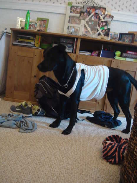 tiene una licencia de perro, y él no tiene miedo de usarlo! Este equipo funciona especialmente bien si tu perro es un basenji, ya que han construido en esmoquin. (Puntos extra para blanco y negro basenjis.)Aquí está lo que usted necesita para el traj