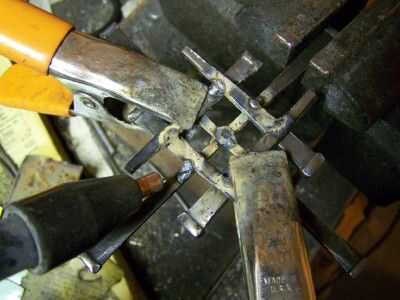 Cuando todo es como usted lo desea, hacer una segunda soldadura frente a la primera para unir los dos conjuntos cruzados. (Las pinzas no necesariamente tendría que fijarse después de la primera soldadura en el paso anterior.)