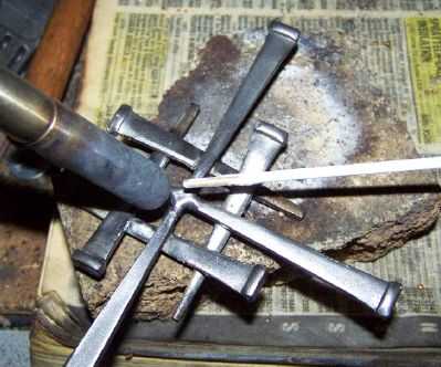 Use una taza de cepillo de alambre en una Dremel para quitar escoria de la suelde. Sujete firmemente la Cruz y la Dremel para que el Dremel no patinar y eliminar algunos de los colores superficiales azulados iridiscentes. Si un área muy pequeña de la coloración manchado, puede ocultarla con una aplicación ligera de color de una pluma de marca permanente negro o azul oscuro.