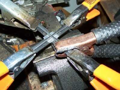 He encontrado que obtienen mejores resultados si atribuyo abrazadera de puesta a tierra de la soldadora directamente a uno de los clavos en lugar del poste de soporte por el cual se lleva a cabo la plantilla en la prensa.