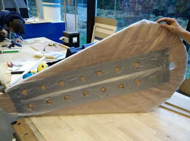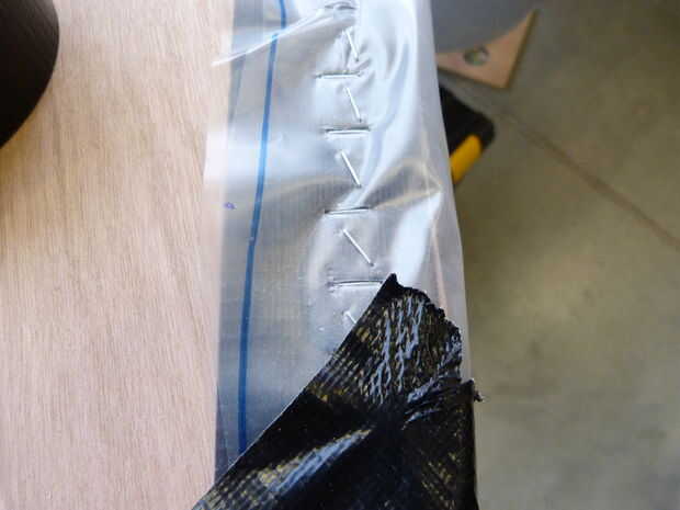 Fije una hoja de plástico fuerte en la parte inferior y refuerza con ducktape si es necesario.